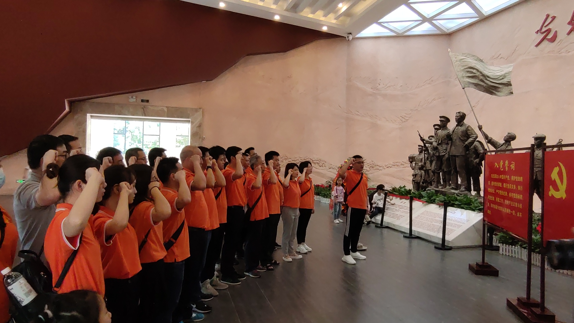 回到序廳,同志們整齊列隊,莊嚴舉行重溫入黨誓詞活動。全體黨員用鏗鏘有力的誓言表達了自己永遠忠于黨、忠于祖國、忠于人民的決心和信心。
