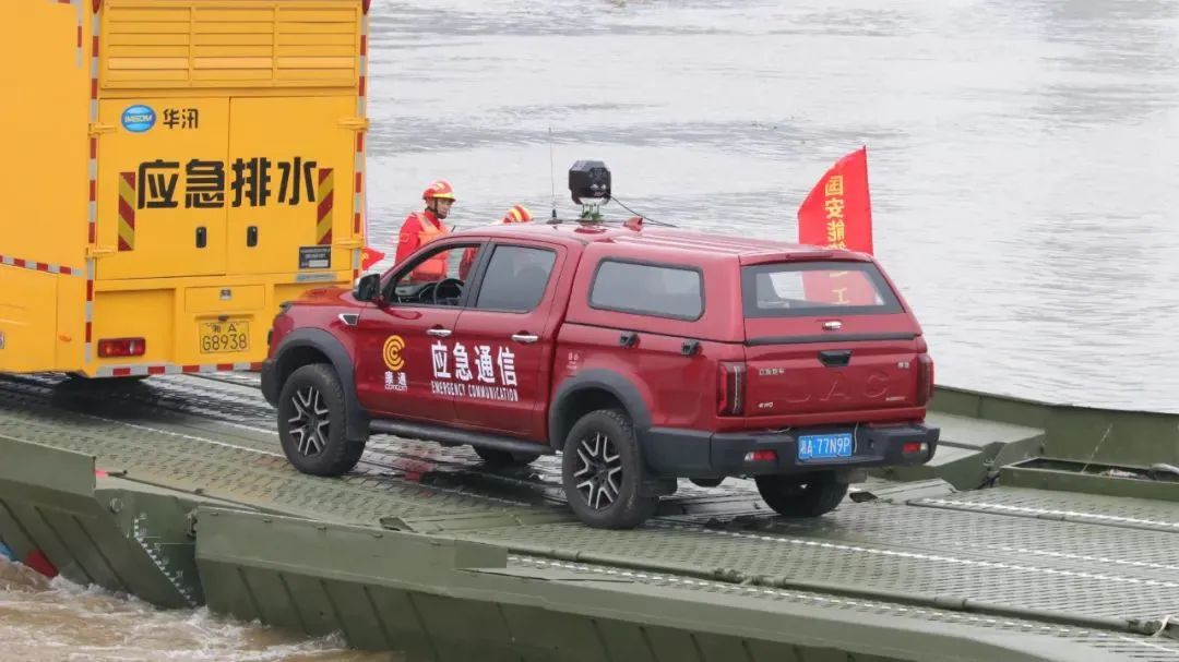 應急通信保障車搭載動力浮橋抵岸救援