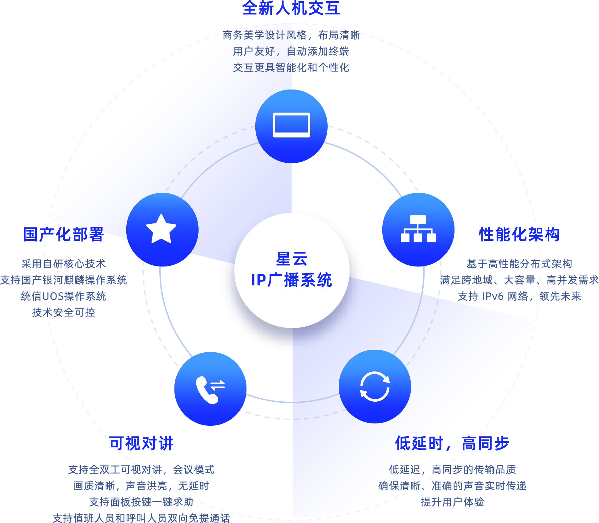 星云IP廣播系統(tǒng)支持多操作系統(tǒng),包括Windows,Linux,國(guó)產(chǎn)麒麟操作系統(tǒng),兼容性與安全性更高,支持多級(jí)管理與系統(tǒng)級(jí)無限擴(kuò)展。支持多種部署方式,包括公有云,私有云,以及專網(wǎng)部署。系統(tǒng)安裝、使用和維護(hù)簡(jiǎn)單,只需將終端接入計(jì)算機(jī)網(wǎng)絡(luò)即可構(gòu)成功能強(qiáng)大的數(shù)字廣播系統(tǒng),多方面體現(xiàn)了其顯著的優(yōu)越性。