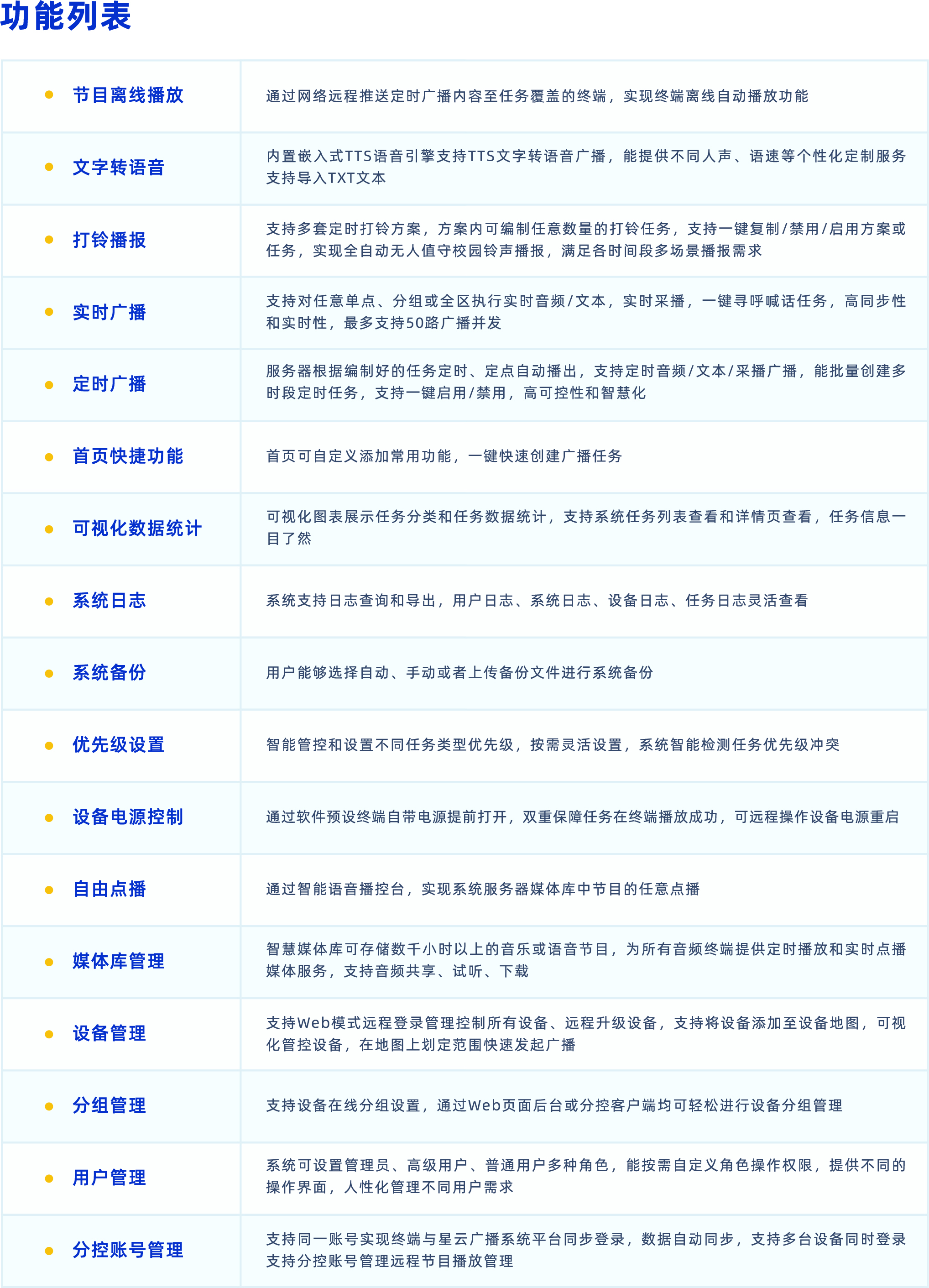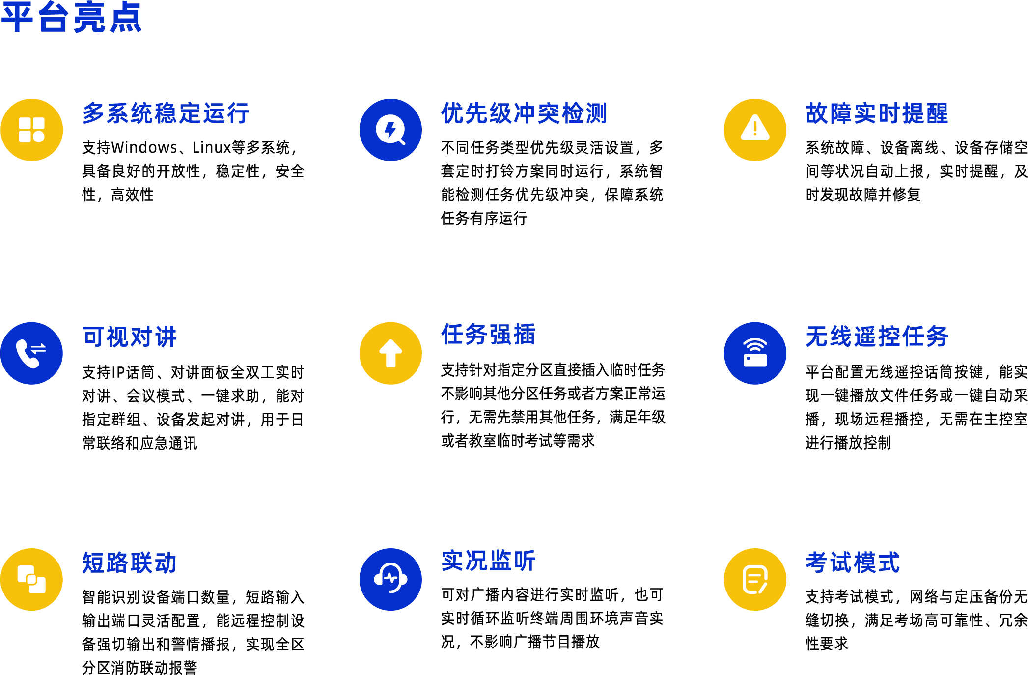未來教育正逐步走向數(shù)字技術(shù)與教學(xué)的深度融合,校園廣播系統(tǒng)作為學(xué)校重要的基礎(chǔ)設(shè)施,必須滿足學(xué)校廣播業(yè)務(wù)場(chǎng)景的多樣化,建設(shè)更高質(zhì)量的教育體系,要求廣播系統(tǒng)具備高效的穩(wěn)定性,安全性,以及多樣化等特點(diǎn)。